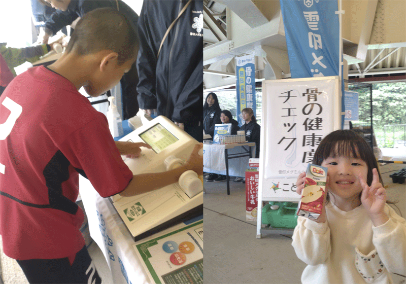骨の健康度チェックをしてくれた人には骨に関する冊子とクリアファイル、ドリンクが渡されました。