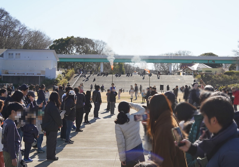 2026年の干支である午年うまれのみなさんに手伝っていただき、トーチリレーを行ってやぐらに点火をしました。