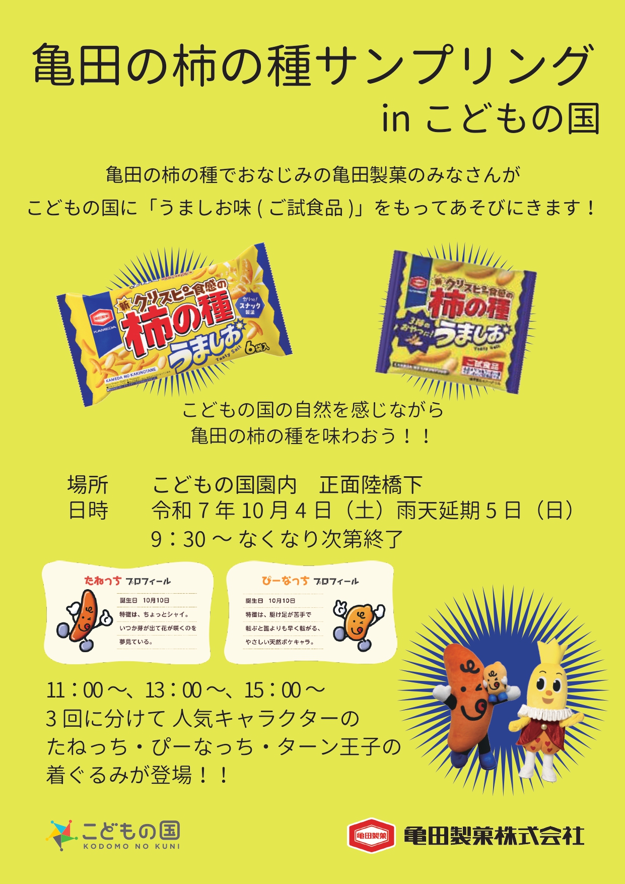 亀田の柿の種でおなじみの亀田製菓のみなさんがこどもの国に「うましお味( ご試食品)」をもってあそびにきます!
