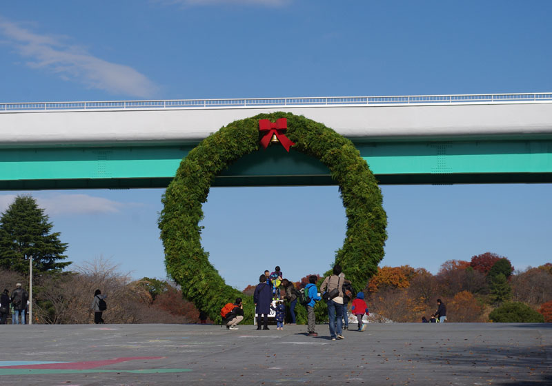 クリスマスの季節がやってきました!今年も正面入口の陸橋下に直径7.5mの大きなリースが登場します。ジャンボリースと一緒に記念撮影をしよう!