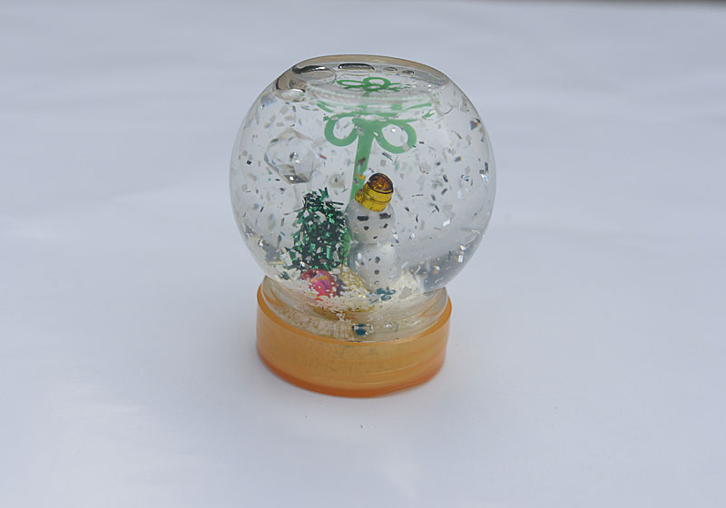 透明な玉の中に冬の景色を作ります。揺らすと雪が降るよ!